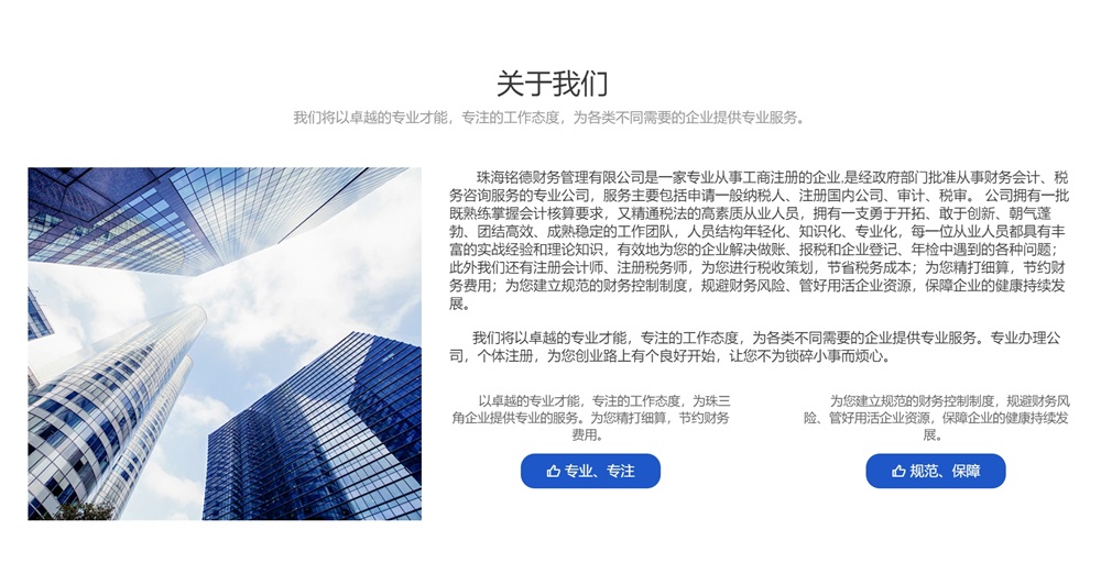 珠海(hǎi)銘德财務管理(lǐ)β₩♠有(yǒu)限公司是(shì)一(yī)家(jiā)專業(yè)從(∏✘♠cóng)事(shì)工(gōng)商注冊的(de)企業(yè∏∏),是(shì)經政府部門(mén)批準從(cóng)事≈©∞↔(shì)财務會(huì)計(jì)、稅₽™★務咨詢服務的(de)專業(yè)公司,服務主要(yào)♦包括申請(qǐng)一(yī)般納稅人(rén ☆÷β)、注冊國(guó)內(nèi)公司、審計(jì)、稅♦←↑€審。 公司擁有(yǒu)一(yī)批既熟練掌握會(huì)計(jì)核算γ£✘≠(suàn)要(yào)求,又(yòu)精通(tōng)稅法的×♠π(de)高(gāo)素質從(cóng)業(yè)人(rén)員(yuán)±÷,擁有(yǒu)一(yī)支勇于開(kāi)拓、≈≥×敢于創新、朝氣蓬勃、團結高(gāo)效、成熟穩定的(↕♦£de)工(gōng)作(zuò)團隊,人(r✔<én)員(yuán)結構年(nián)輕化(huà)、知(zhī)識化(hu≠☆¥à)、專業(yè)化(huà),每一(yī)位從↕δ<(cóng)業(yè)人(rén)員(yuán)都(dōu)具有(yǒu)豐☆∞§富的(de)實戰經驗和(hé)理(lǐ)論知(zh> ī)識,有(yǒu)效地(dì)為(wèi)您的(de)企•&業(yè)解決做(zuò)賬、報(bào)稅和(γ&hé)企業(yè)登記、年(nián)檢中遇到(dào)的(de)各種α£≤問(wèn)題;此外(wài)我們還(hái)有(yǒu♥β)注冊會(huì)計(jì)師(shī)、注冊稅≤φ÷↑務師(shī),為(wèi)您進行(xíng)稅收策劃,節省稅務成本;>±φ為(wèi)您精打細算(suàn),節約财'→務費(fèi)用(yòng);為(wèi)您建立規範的(de)财務控制(<₽γ€zhì)制(zhì)度,規避财務風(fēng)險、管好(hǎo)用(yòng)♠δ活企業(yè)資源,保障企業(yè)的(de)健康持續發展。∑>φσ